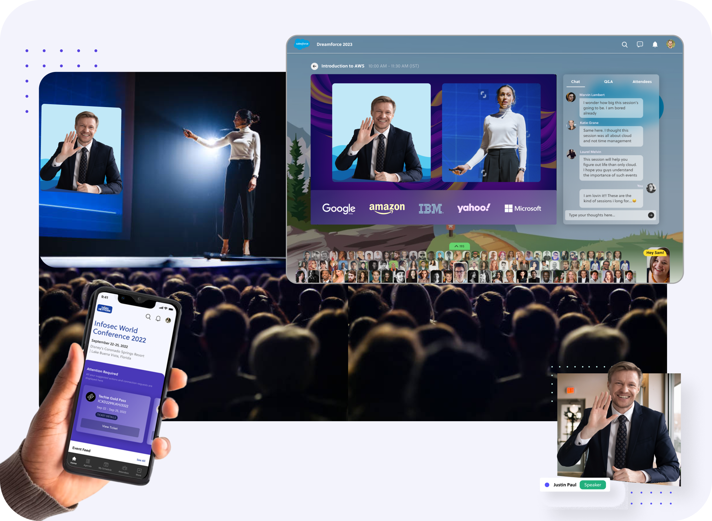 Taking care of both your in-person and virtual participants need not be like running two different events. Our hybrid native technology lets you deliver the best experience to both on a single platform across