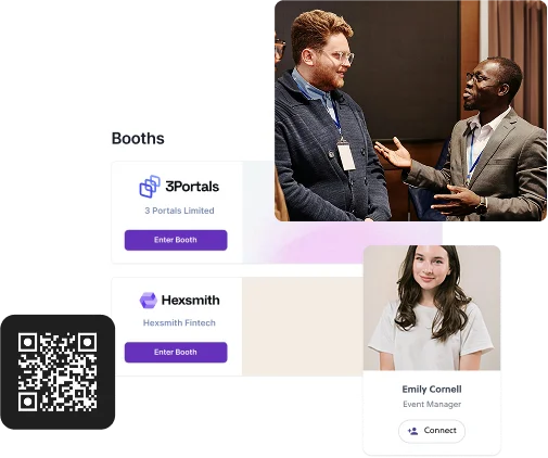 Allow attendees to connect in real time through built-in chat or video calls. Whether it's a quick question or a deeper conversation, make networking feel effortless and personal.