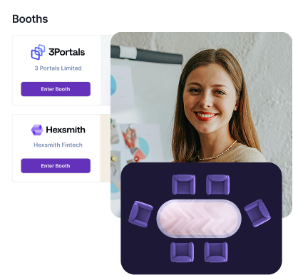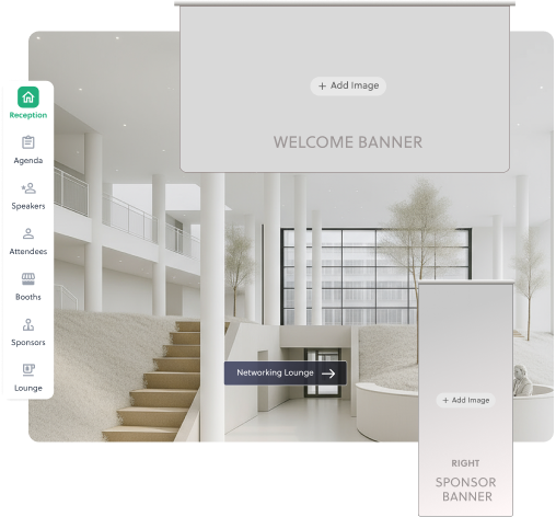 Organizers can customize every aspect of their virtual event space - lobby designs, session halls, lounges, and networking areas - to match their event theme, branding, and sponsor requirements.